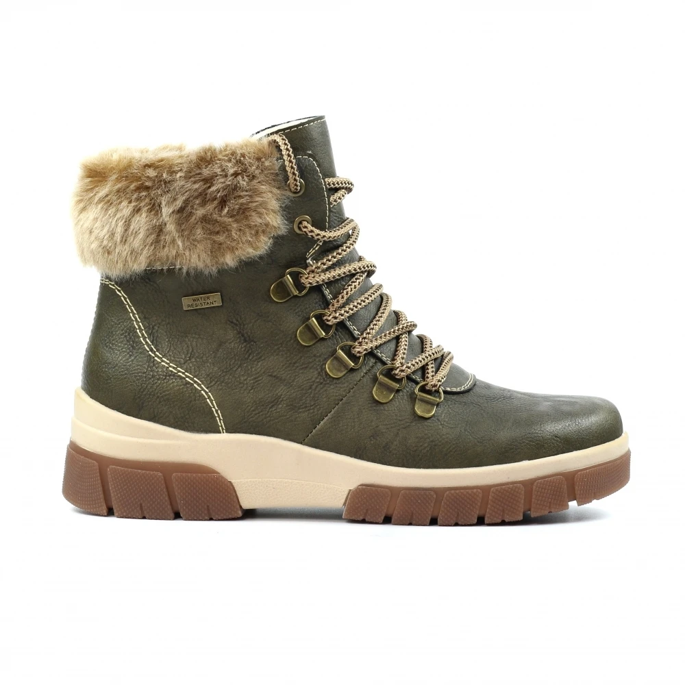 - Fastenings: seven eyelet lace-up and side zip
