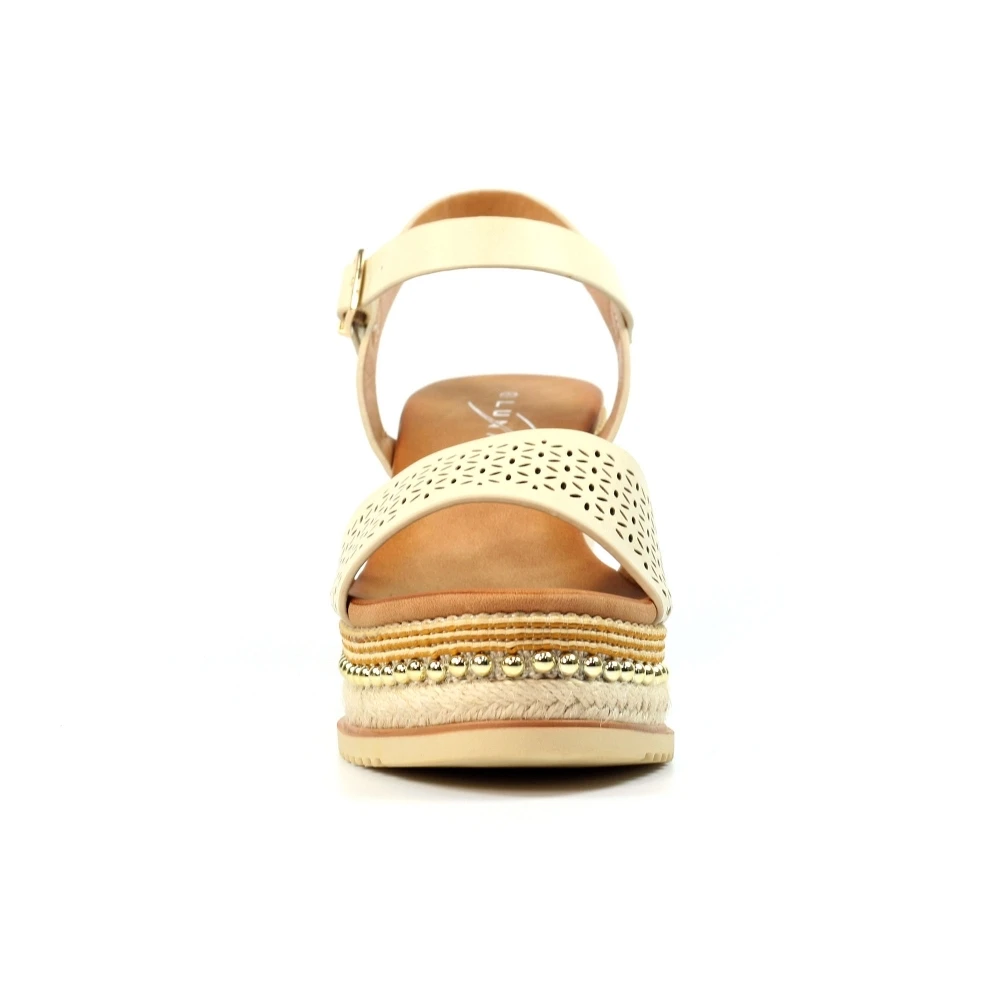 - Decoration: cut out design upper strap, woven style wedge heel with gold studs