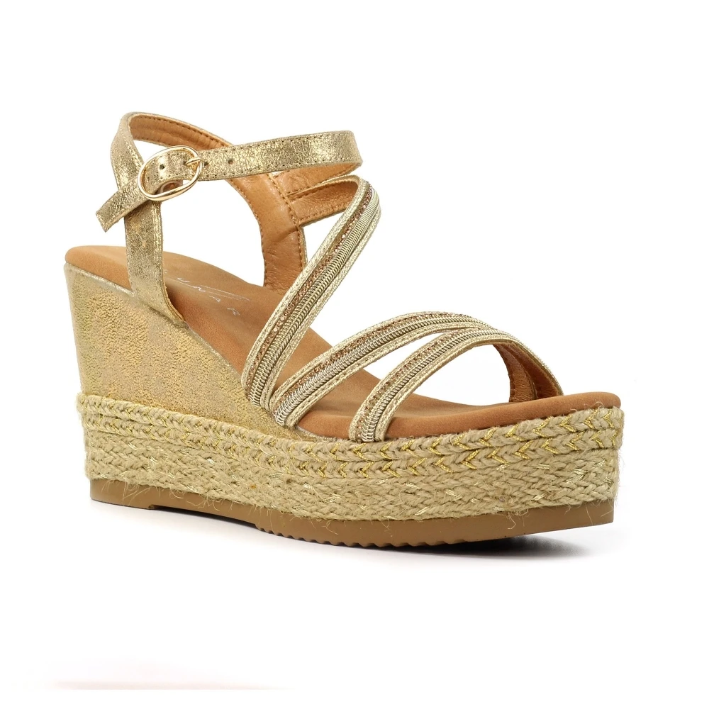 - Decoration: woven effect at heel and gemstone encrusted asymmetric straps