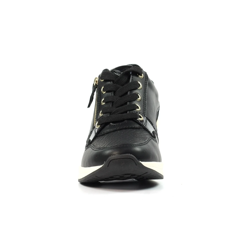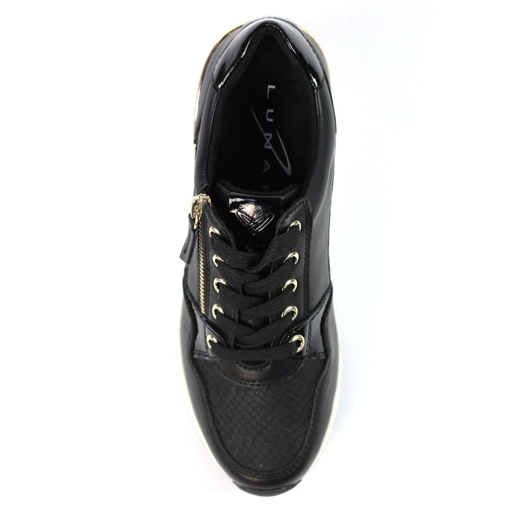 - Decoration: a mix of patent and textured panels with metallic heel insert