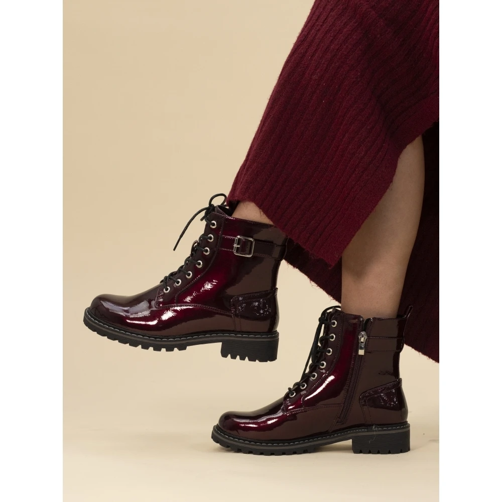 - Fastenings: seven eyelet lace-up with side zip