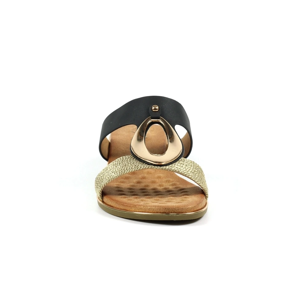 - Decoration: metallic strap, gold brooch on front strap and gold outer sole insert